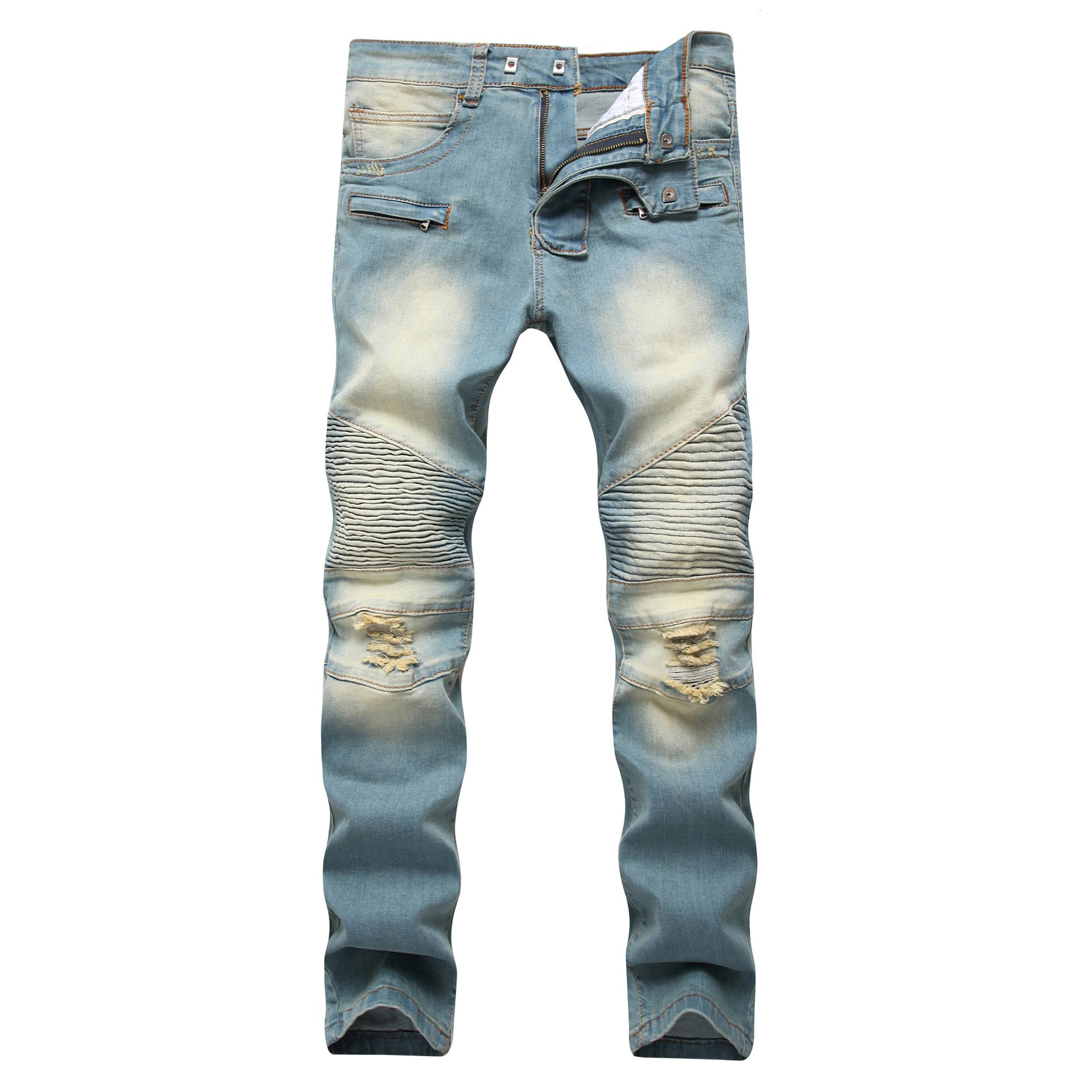 Cross border special for men's zipper, jeans, broken holes, dragging the yellow, nostalgic men, Europe and America high street stretch pants