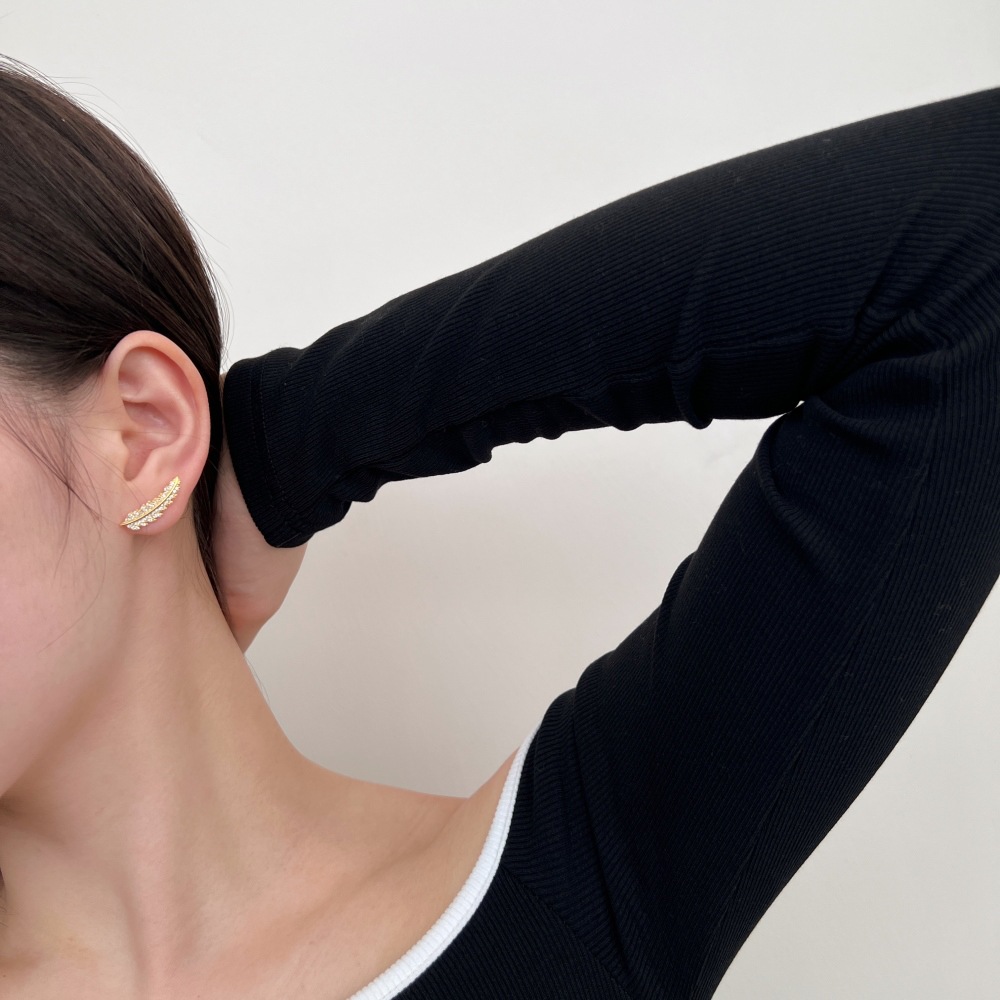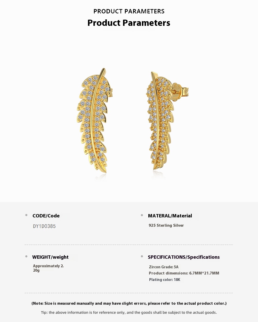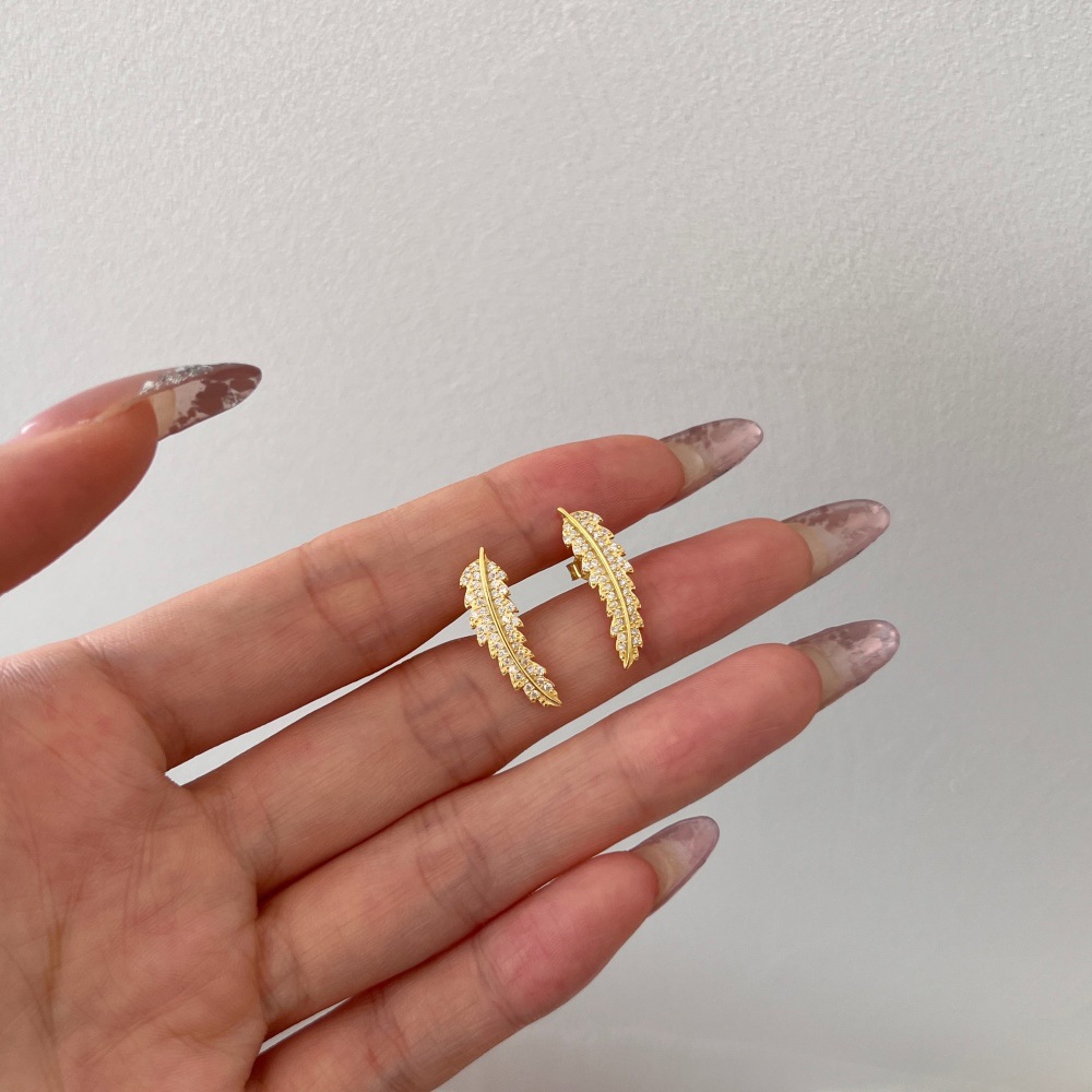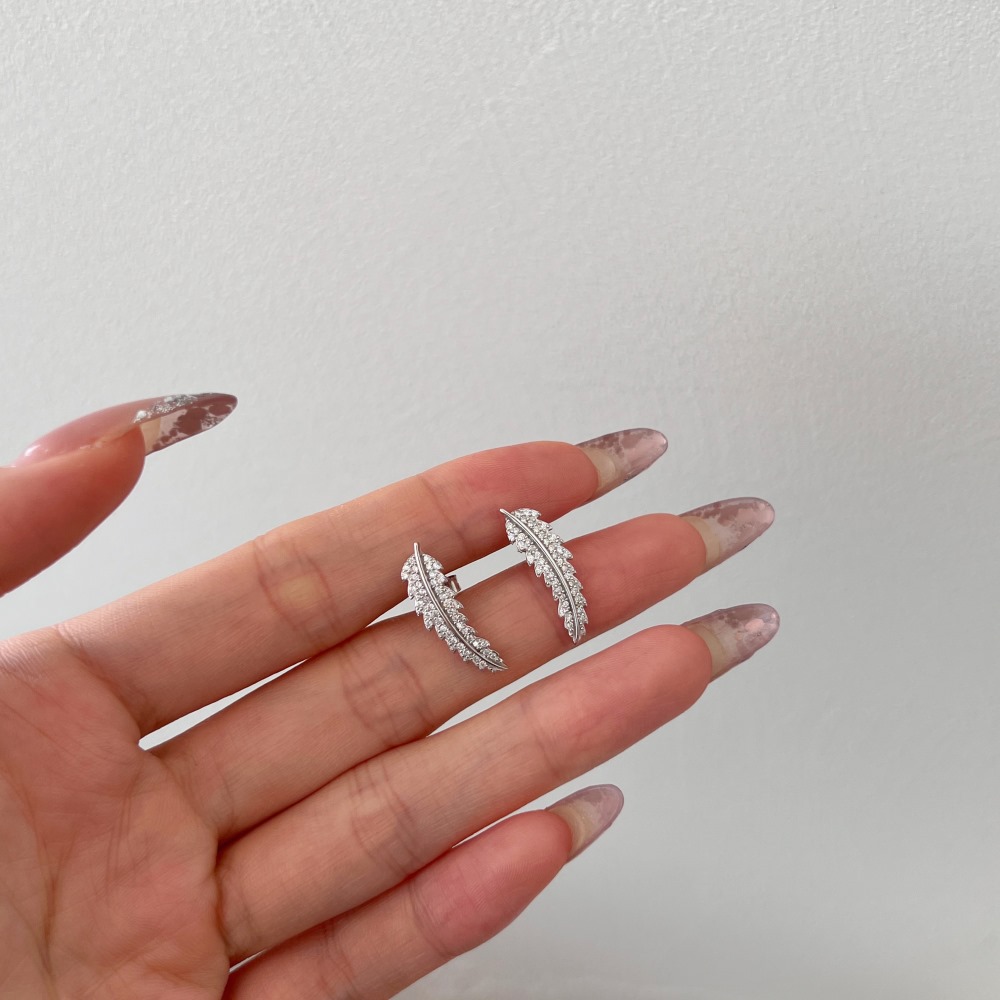 Leaf-shaped Zircon Inlaid S925 Sterling Silver Stud Earrings For Women