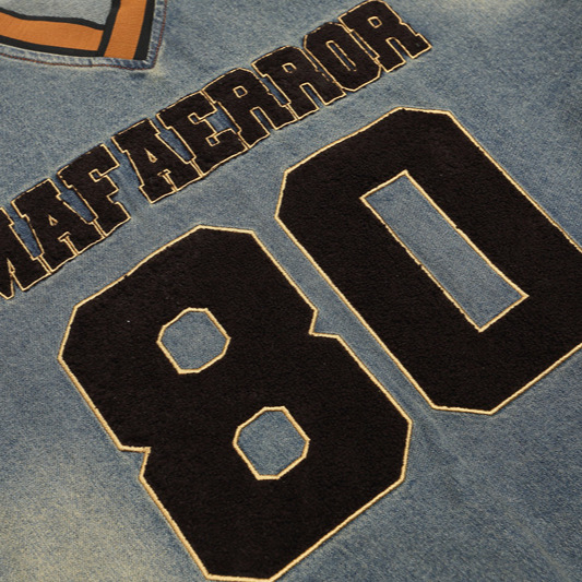 National Tide Five-pointed Star Letter Flocking Embroidered V-neck Denim Hoodie